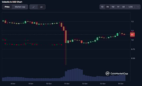 What makes Celestia the best crypto to buy now is its performance following the Friday drop, as the token started a sharp recovery that took it from $0.55 to nearly $1.2 before seeing a small correction to $1.12.