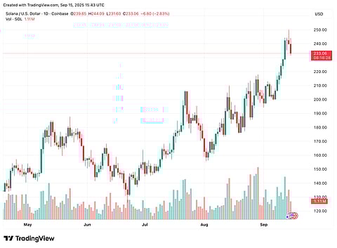 Solana’s price has recently broken out of an important resistance level and is currently consolidating around $243. Experts predict that if the momentum continues, Solana could target $250 and even higher. The bullish trend in Solana’s market is driven by increasing institutional interest and a growing creator economy, pushing Solana further into the spotlight.