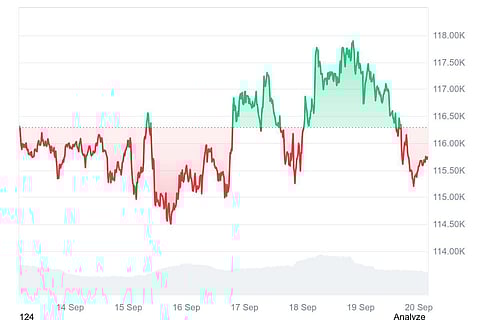 According to CoinMarketCap, Bitcoin initially shot to $117K on September 18, followed by a steady decline back into the $115.5K area on the following day.