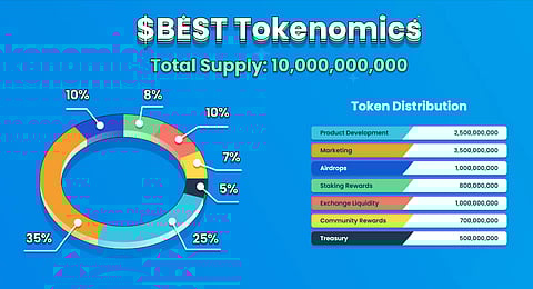 However, the wallet is not offering its entire supply for sale. The total supply sits at 10 billion BEST tokens, which is distributed to cover a variety of aspects, such as: