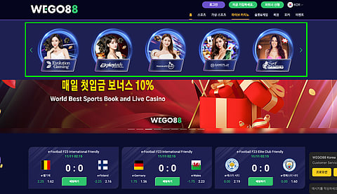 첫 번째는 WEGO88 입니다. 최근 한국에 정식으로 진출한 해외 합법 카지노 사이트로 필리핀 PAGCOR 라이센스를 보유하고 있으며 한국에 최적화 된 서비스를 제공하여 최근 급 부상하고 있는 에볼루션 바카라 사이트입니다.